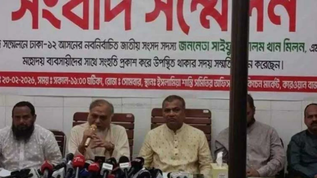 রাজধানীর কারওয়ান বাজারে চাঁদাবাজি বন্ধ করা অনেক কঠিন বলে মন্তব্য করেছেন ঢাকা-১২ আসনের জামায়াত ইসলামী থেকে নবনির্বাচিত সংসদ সদস্য সাইফুল আলম মিলন। আজ সোমবার (২৩ ফেব্রুয়ারি) দুপুরে কারওয়ান বাজারের কিচেন মার্কেটে ইসলামিয়া শান্তি সমিতির আয়োজনে এক সংবাদ সম্মেলনে তিনি এ কথা বলেন। রমজান উপলক্ষে দ্রব্যমূল্য নিয়ন্ত্রণ, ব্যবসায়ীদের কাছে চাঁদাবাজি, ভয়ভীতি ও হয়রানির প্রতিবাদে এই সংবাদ সম্মেলন আয়োজন করা হয়।