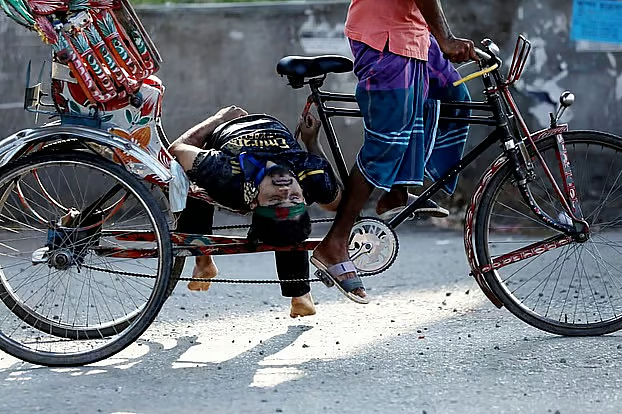জুলাই গণ-অভ্যুত্থানে গুলিবিদ্ধ শিক্ষার্থী গোলাম নাফিজকে বহনকারী রিকশাচালক নূর মোহাম্মদ। ছবি: সংগৃহীত