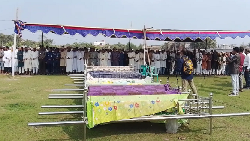 বাগেরহাটের রামপালে নৌবাহিনীর বাসের সঙ্গে মাইক্রোবাসের মুখোমুখি সংঘর্ষে নিহত মোংলা পৌরসভার বাসিন্দা আব্দুর রাজ্জাকের পরিবারের ৯ সদস্যের দাফন সম্পন্ন হয়েছে। শুক্রবার (১৩ মার্চ) জুমার নামাজ শেষে মোংলা সরকারি কবরস্থানে জানাজা শেষে তাদের দাফন করা হয়।