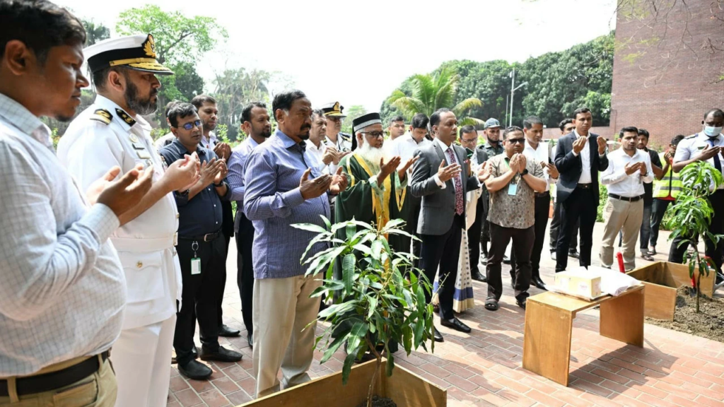 জাতীয় সংসদ ভবন প্রাঙ্গণে আম গাছের চারা রোপণ করেন শেষে দোয়া