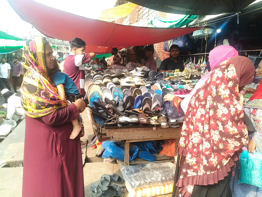 রাজধানীর কারওয়ান বাজারের ২ নম্বর সুপারমার্কেটে ঢোকার পথে জুতার কয়েকটি অস্থায়ী দোকান। সেখানে দাঁড়িয়ে দুই শিশুকে নিয়ে জুতা দেখছিলেন দুজন নারী। বয়স্ক এক নারীর কোলে কয়েক মাস বয়সী এক ছেলেশিশু। তার চেয়ে কম বয়সী আরেক নারীর পাশে দাঁড়িয়ে আছে ১০–১১ বছরের একটি মেয়ে।