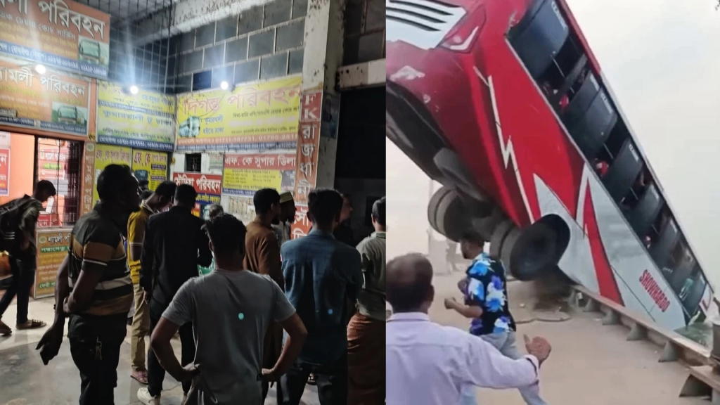 গিয়াস উদ্দিন রিপন বলেন, ‘বাসের সঙ্গে আমার স্ত্রী লিটা ও মেয়ে আয়েশা পানিতে ডুবে যায়। পরে স্ত্রীকে স্থানীয়রা উদ্ধার করলেও মেয়েকে এখনও পাইনি।’