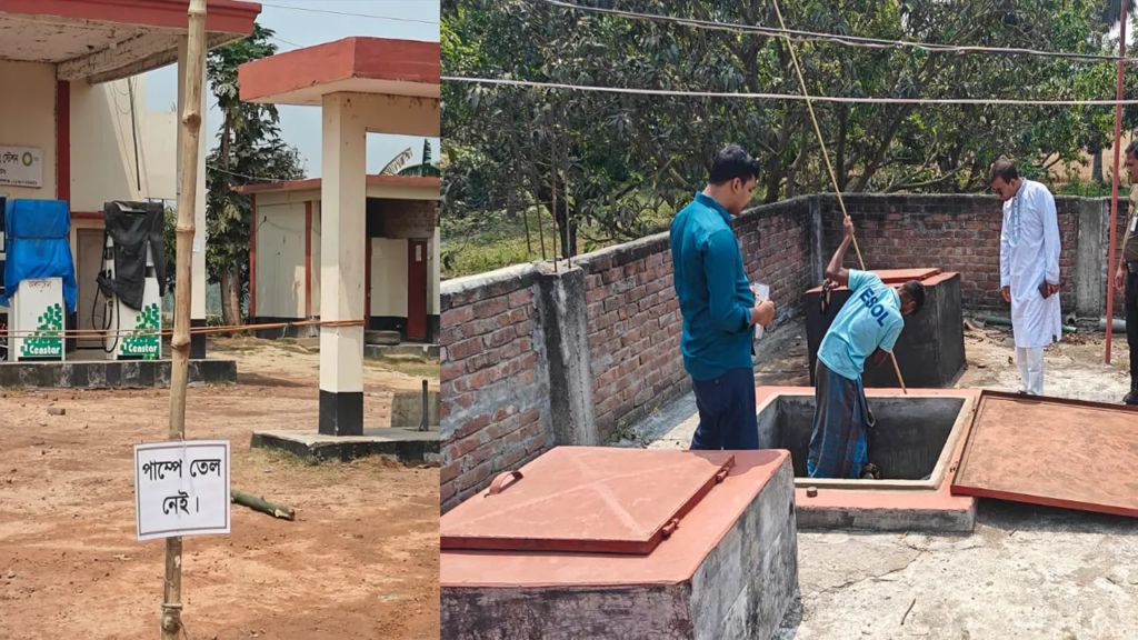 বৃহস্পতিবার (২৬ মার্চ) বিকেল থেকে পাম্প কর্তৃপক্ষ ‘তেল নেই’ নোটিশ সাঁটিয়ে বিক্রি বন্ধ করে দেয়। খবর পেয়ে অভিযানে গিয়ে পাম্পের সংরক্ষিত ট্যাংকে ৯ হাজার ৭৮৩ লিটার জ্বালানি মজুত পাওয়া যায়। এর মধ্যে ২ হাজার ৩৬৮ লিটার পেট্রোল, ৩ হাজার ৭৬০ লিটার ডিজেল এবং ৪ হাজার ৬৫৫ লিটার অকটেন।