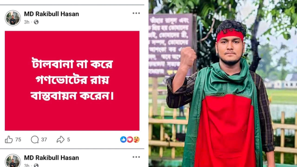 জানা যায়, সোমবার দুপুর ১টার দিকে ‘MD Rakibull Hasan’ নামের একটি ফেসবুক আইডি থেকে ‘টালবাহানা না করে গণভোটের রায় বাস্তবায়ন করেন’ শিরোনামে একটি পোস্ট দেওয়া হয়। এর প্রায় এক ঘণ্টার মধ্যেই জেলা ছাত্রদলের সভাপতি সৈয়দ সাদিকুল ইসলাম পাভেল ও সাধারণ সম্পাদক মো. জাহাঙ্গীর খানের অনুমোদনে তার বহিষ্কারের সিদ্ধান্ত কার্যকর করা হয়।