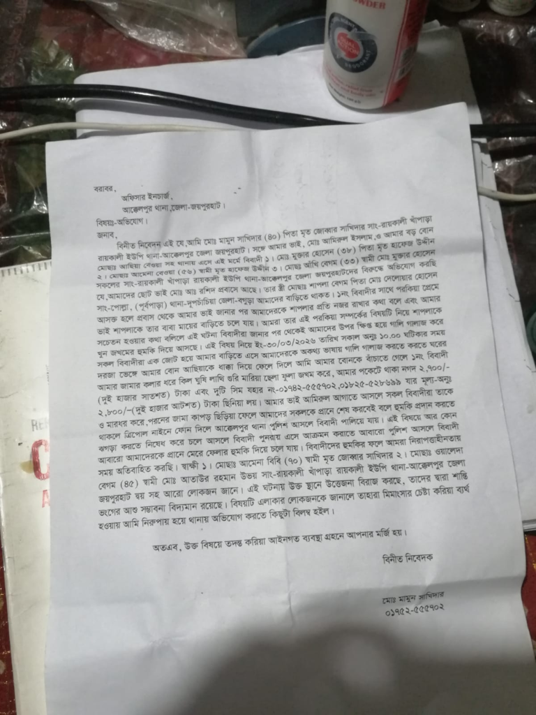 ঘটনার পর ভুক্তভোগী পরিবার আক্কেলপুর থানায় সাধারণ ডায়েরি (জিডি) করেছে।
