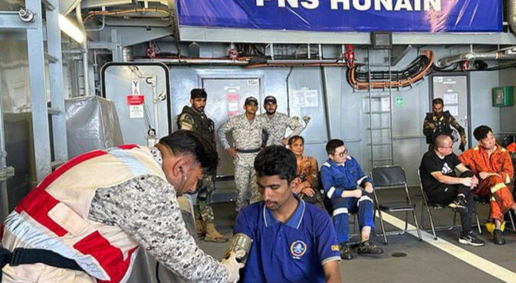 পাকিস্তানের সামরিক বাহিনীর জনসংযোগ শাখা জানিয়েছে, জাহাজটি থেকে জরুরি সংকেত পাওয়ার পরপরই নৌবাহিনীর উদ্ধারকারী দল দ্রুত ঘটনাস্থলে পৌঁছায়। উদ্ধার করা নাবিকদের মধ্যে বাংলাদেশ ছাড়াও চীন, মিয়ানমার, ভিয়েতনাম এবং ইন্দোনেশিয়ার নাগরিক রয়েছেন।