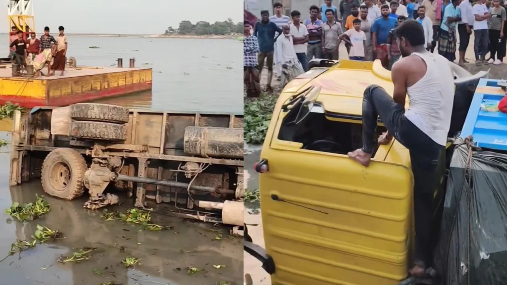 ফেরিতে উঠতে গিয়ে নদীতে পড়ে যায় ট্রাকটি